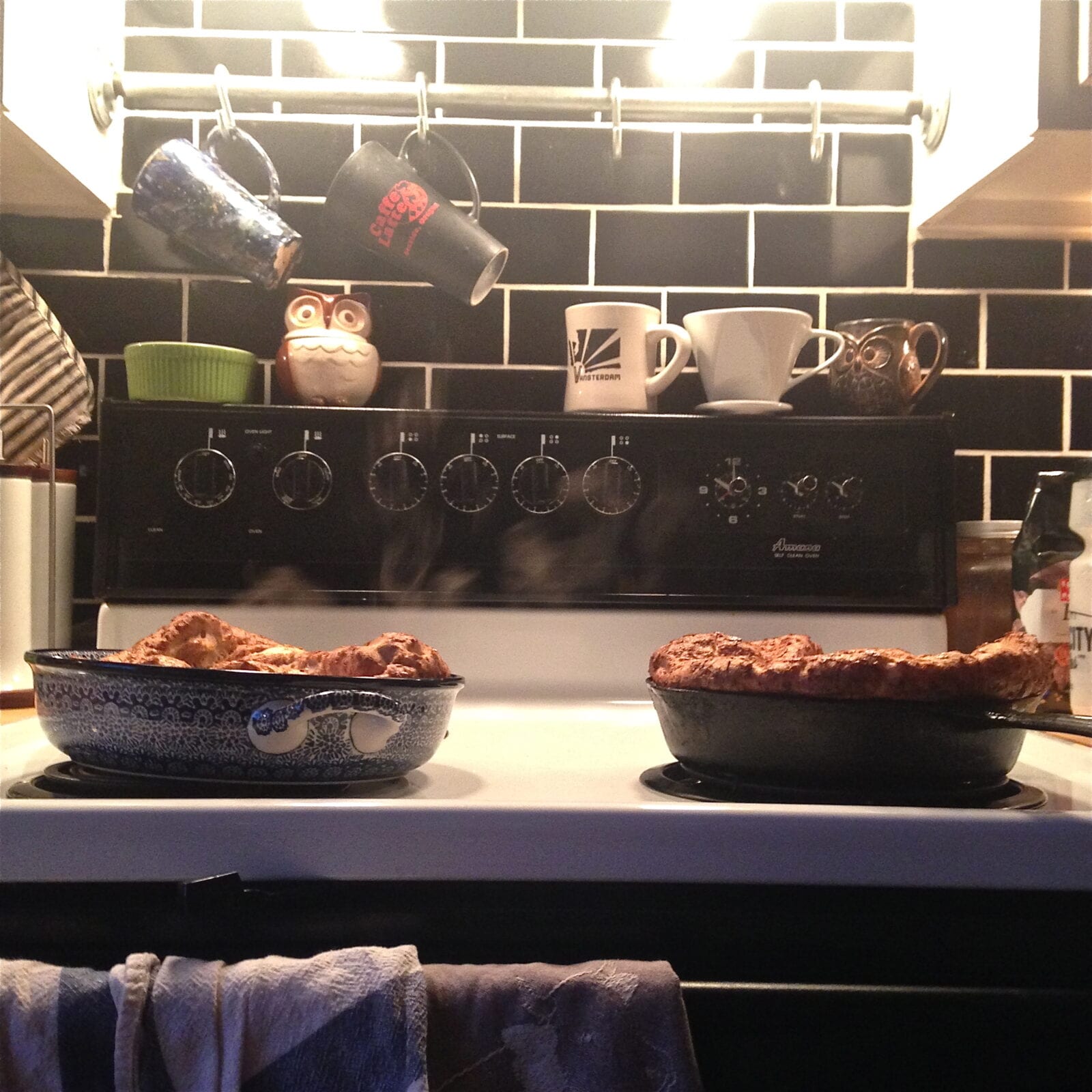 - Pour the batter into your dishes and bake until the Pannekoeken is puffy and golden. Mine took 25 minutes, but I would check at 20.