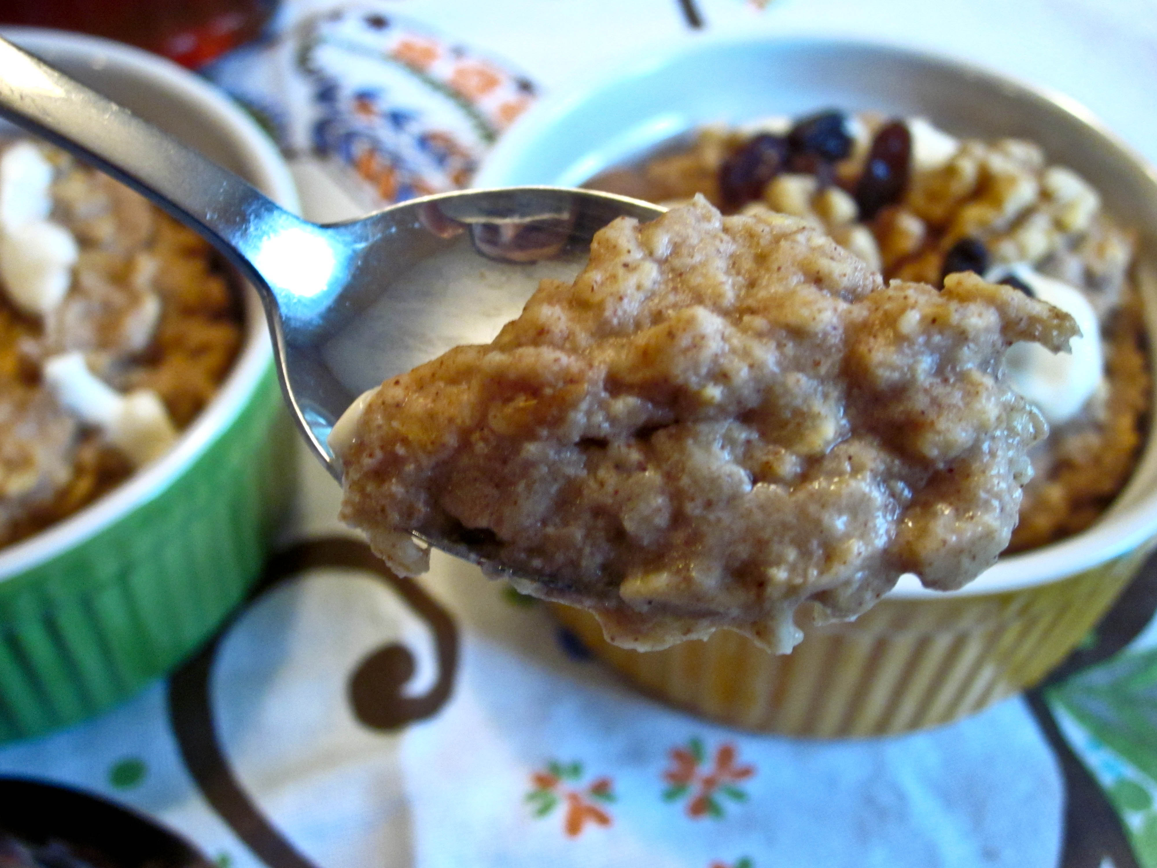 Instead of banana as a sweetener (like I typically use in my custard oatmeal recipes), we’re using a combination of applesauce and a little maple syrup.