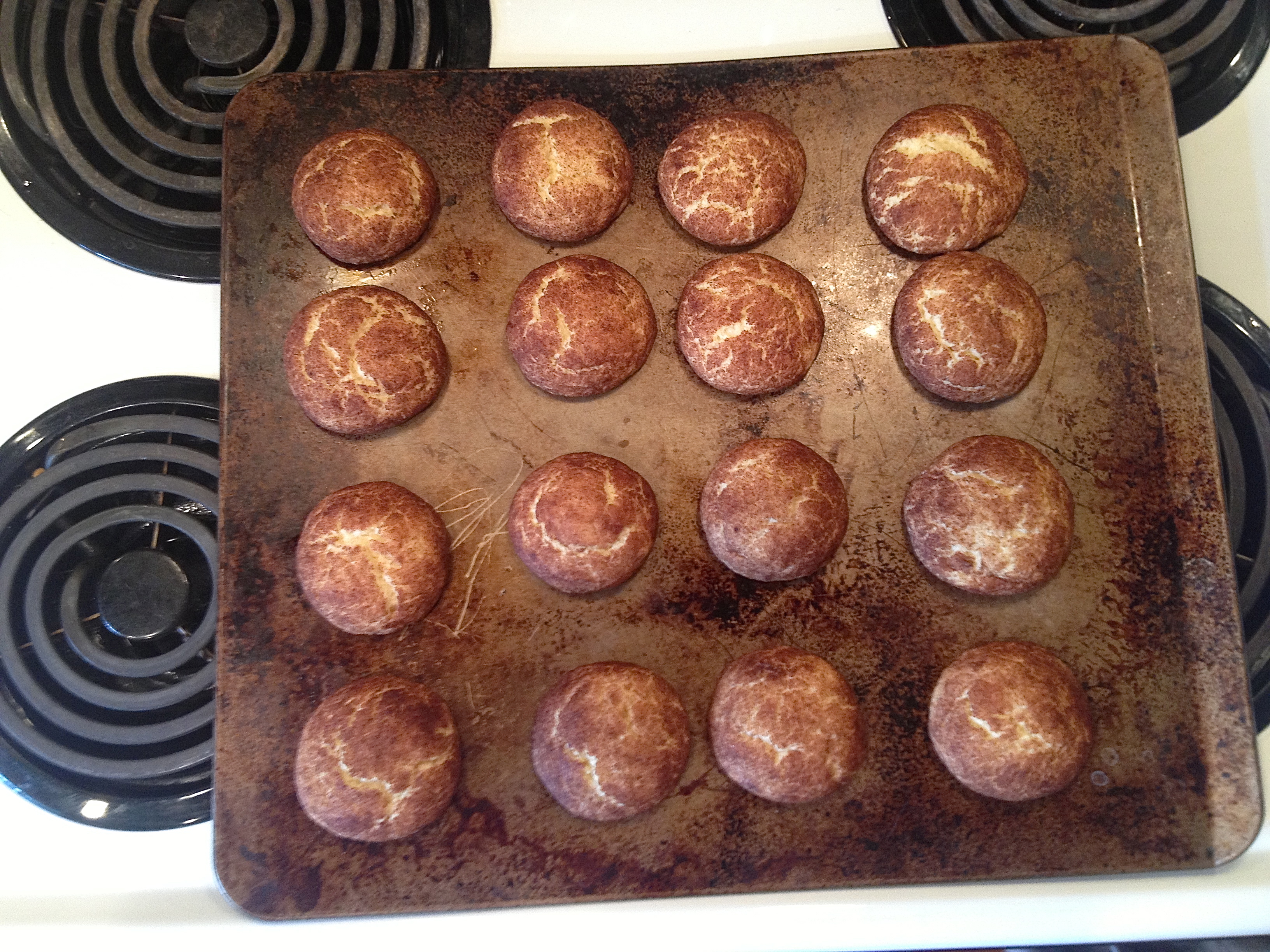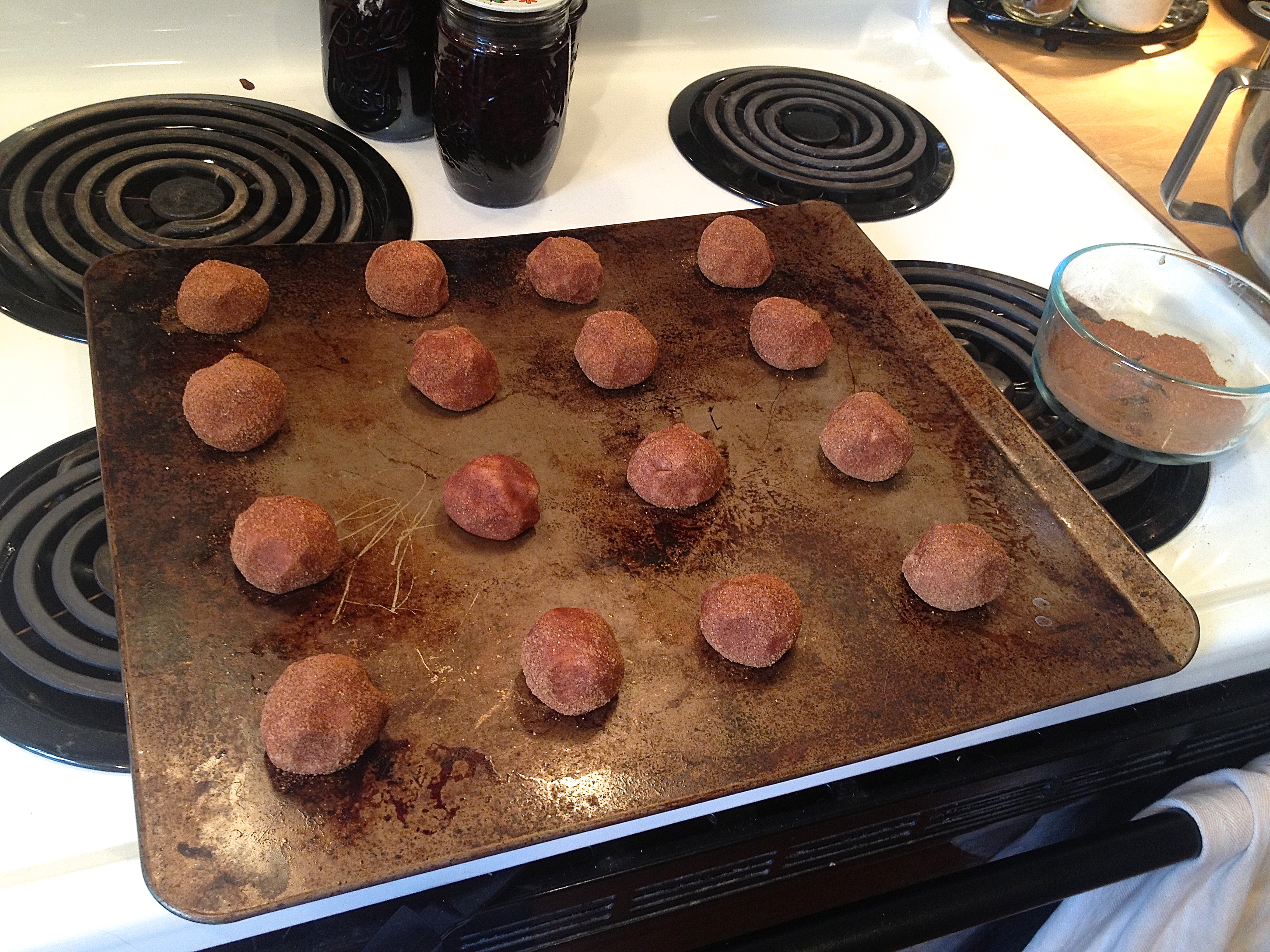 The dough came together in a snap. I mixed up equal parts of sugar and cinnamon and rolled the balls into it. No flattening them out before baking!