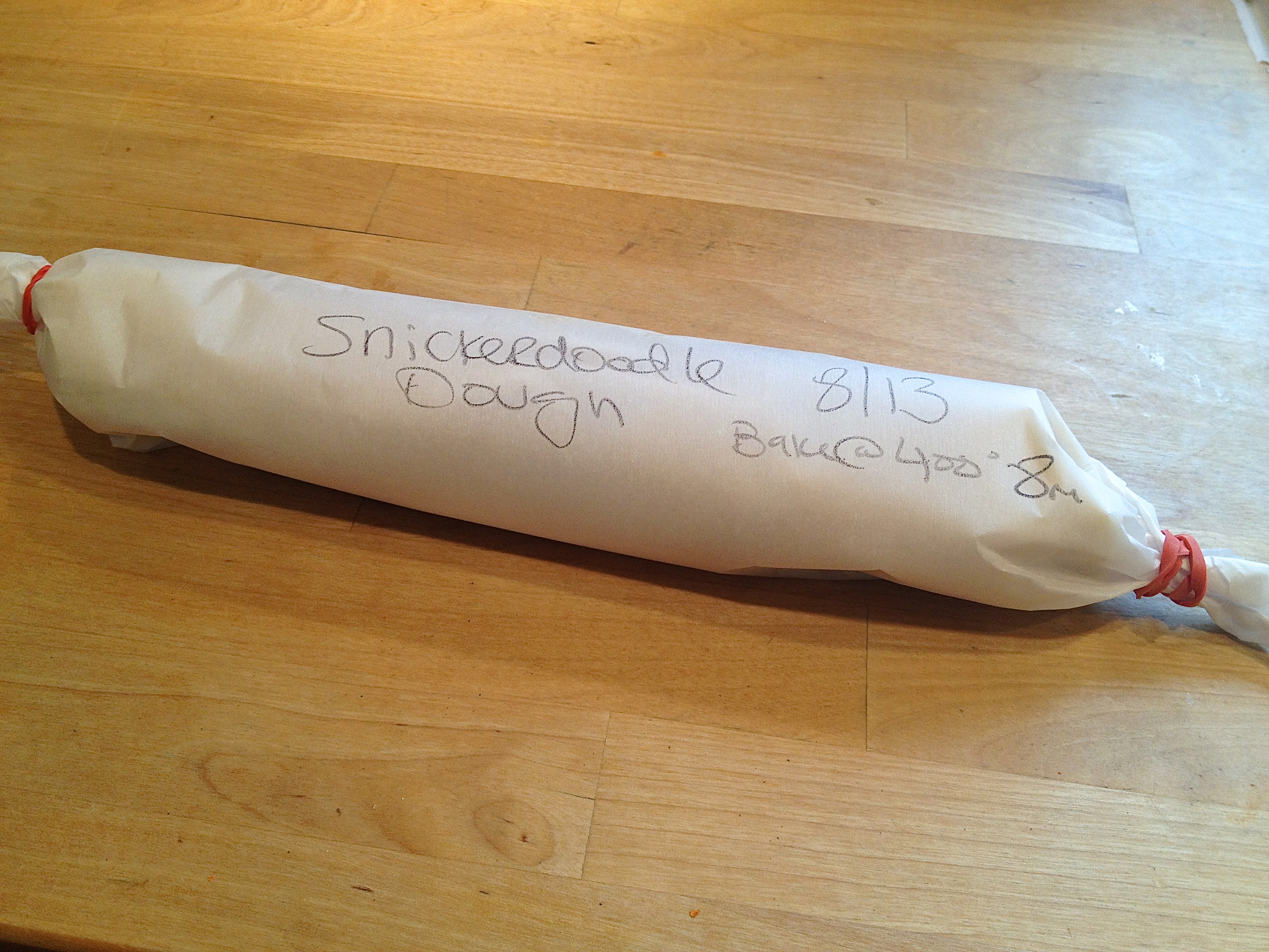 While those 16 cookies baked up, the other half of the dough got wrapped up in parchment paper and put into the freezer.