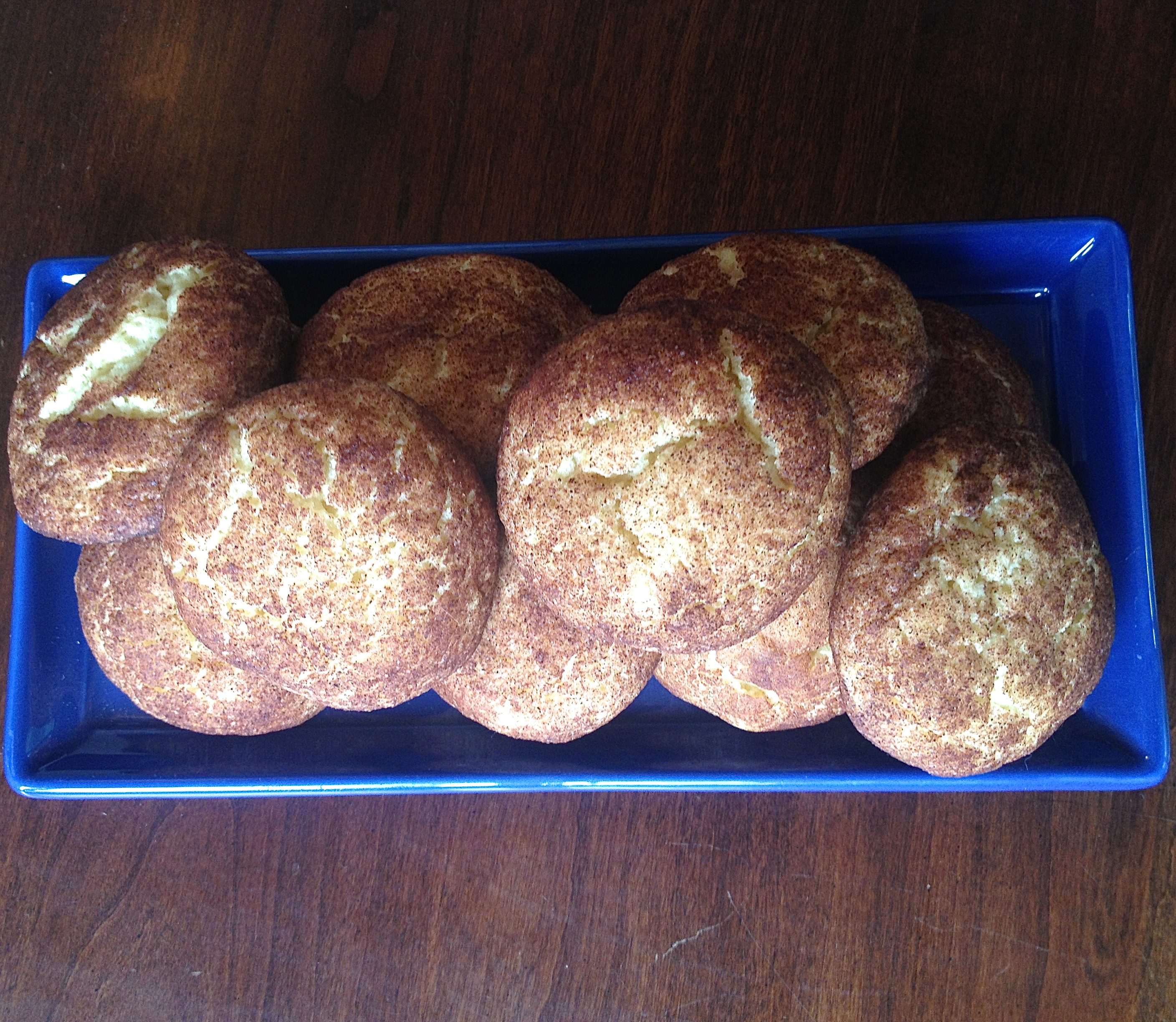 They come out very fluffy looking and only sink down a wee bit. A little bit of cracking through the cinnamon sugar coating. Don’t they look like snickerdoodle cookies should? And they sure taste like it too.