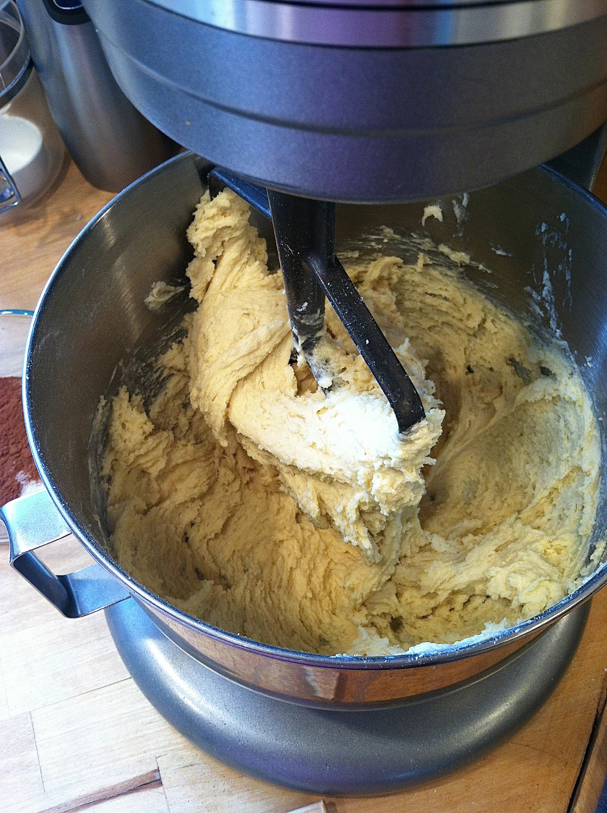 While Jacob did that, I baked a bit in the kitchen. I got out my standing mixer, which makes cookie making super easy. First up the dough. Butter, sugar, egg, white flour and a few more ingredients. Nothing healthy. Everything delicious.