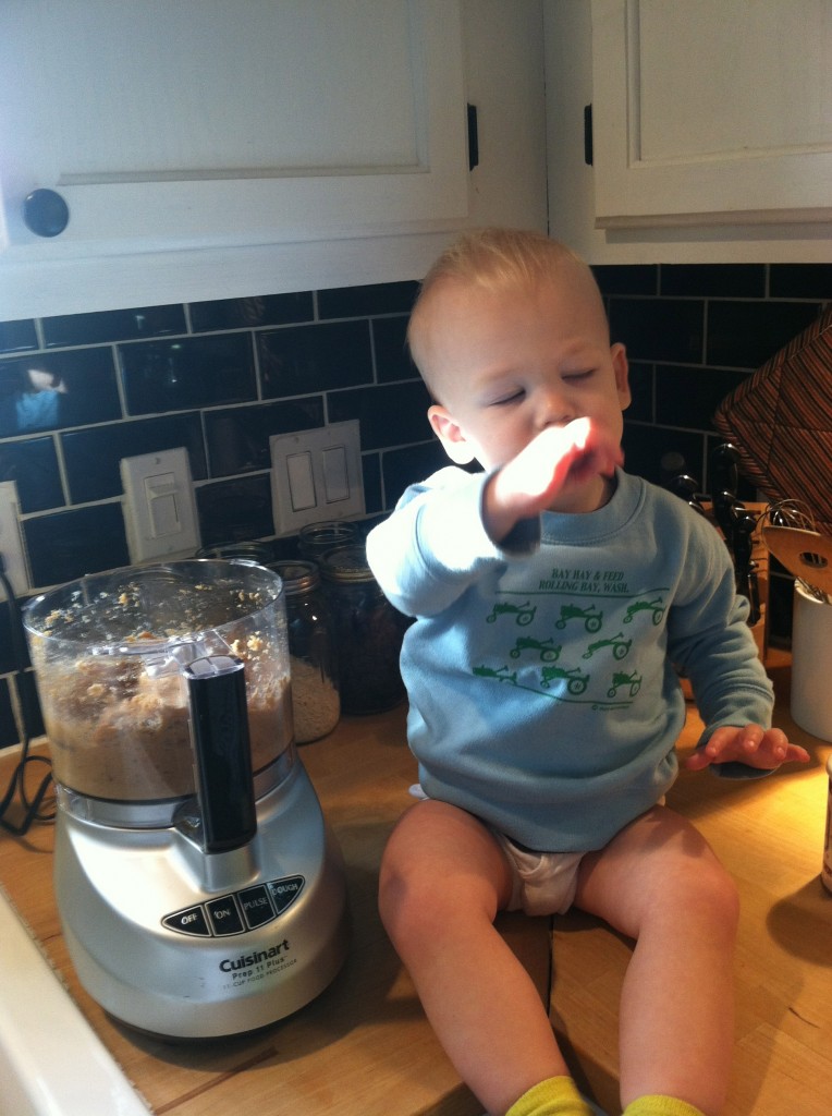 Modifications I plan to make: I don’t have walnuts on hand, but I do have sunflower seeds and pecans, so I’m planning to pulse both in the food processor instead of using chopped walnuts. Plus I don’t want big chunks of nuts since Hunter’s still little. Almond flour would be a great substitute here too.