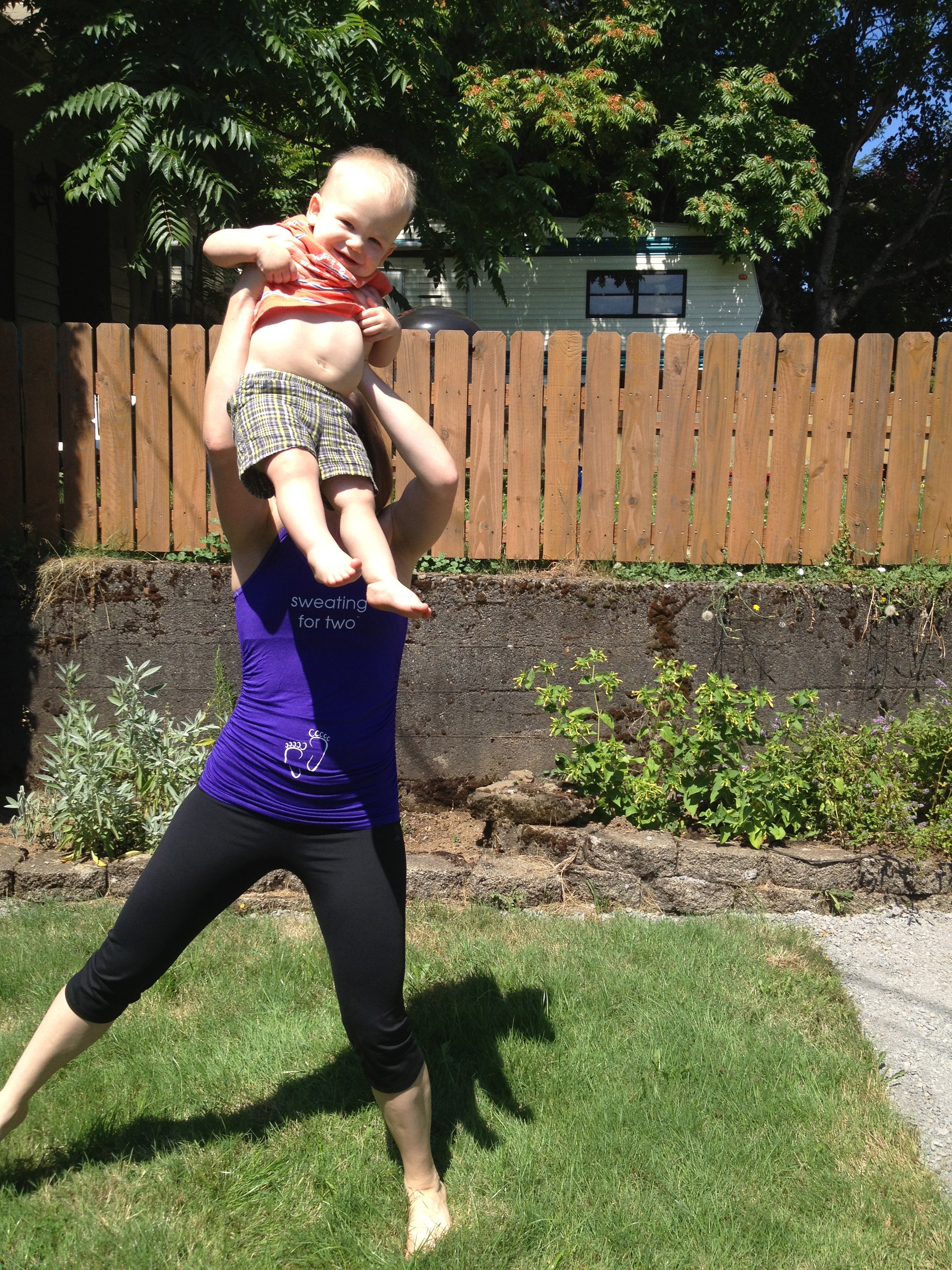 While Jacob was taking these pictures for me, we tested them out with a little mommy-Hunter workout. I felt great moving in them and Hunter had fun being thrown around as my ‘weight’. 🙂