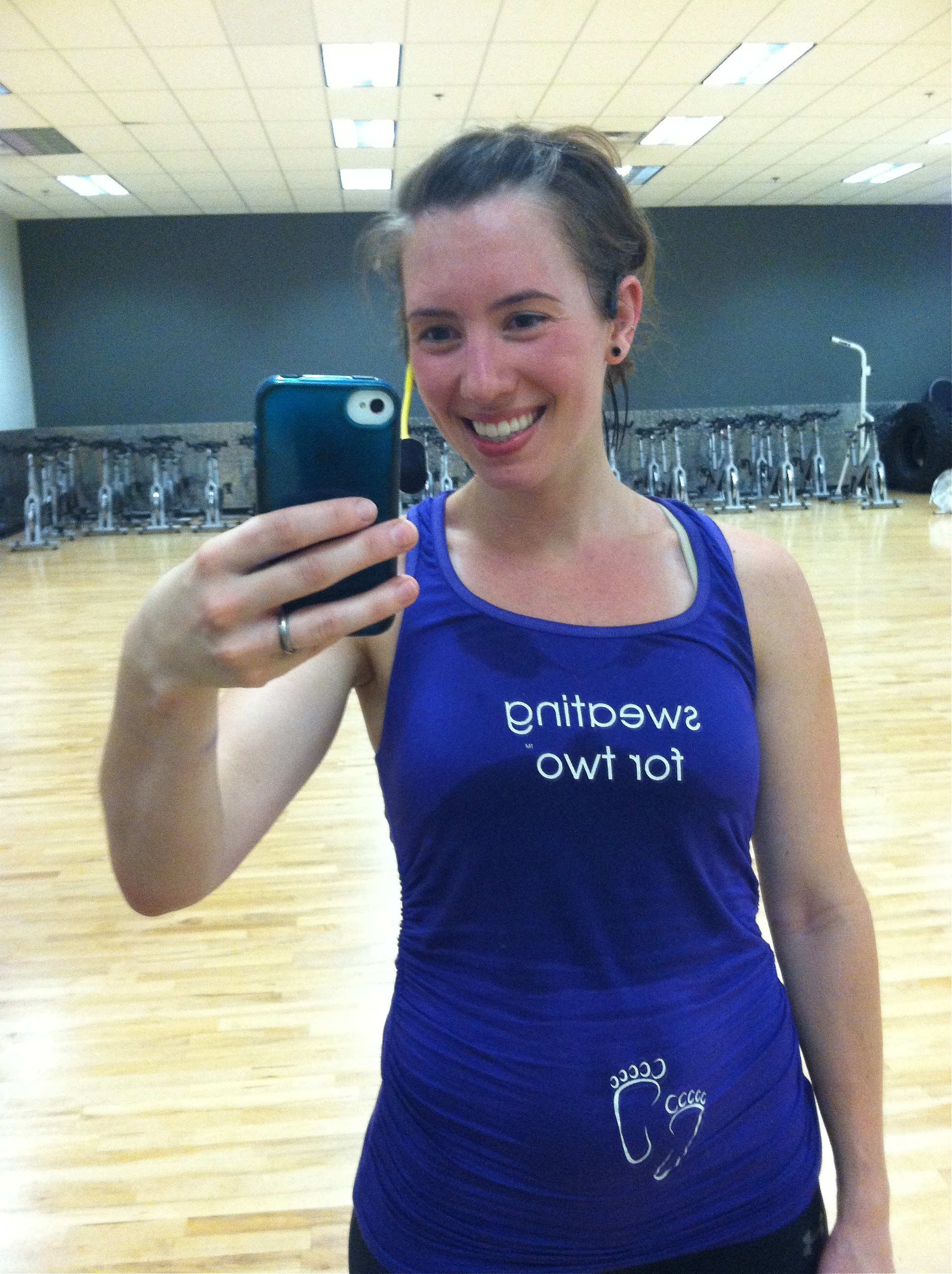 Then Monday evening I tested the top out while teaching BodyCombat. No uncomfortable tugging happened, and it was a super comfortable the whole time. And I sure did sweat for two that night!