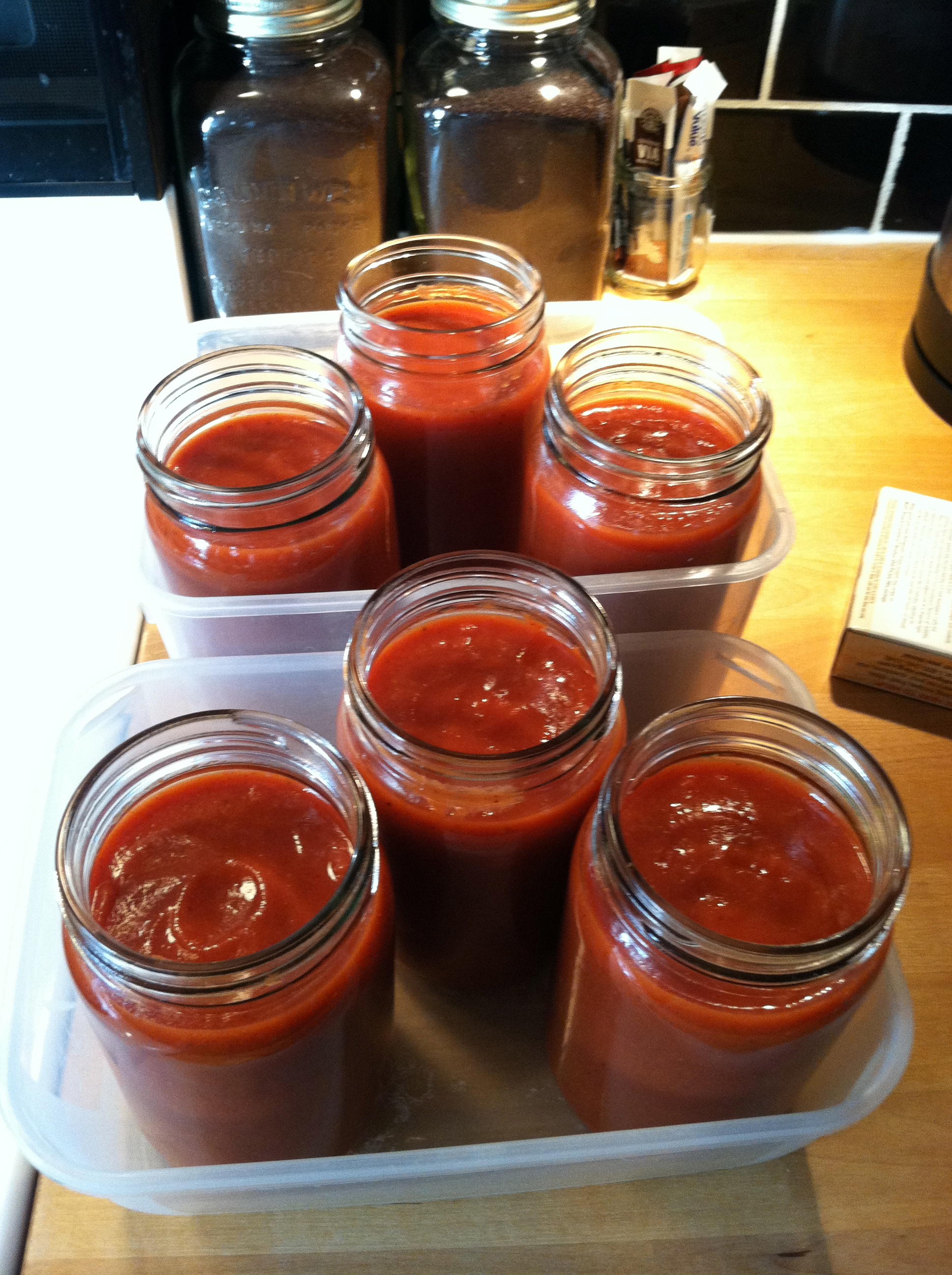 My original plan was to can the extra pints of sauce. My mom gave me all her canning supplies so I was set on that front, now just to know what to do. I read through the canning book she gave me, then consulted with my friend Megan on it. Turns out canning is pretty specific as far as acidity of the food and using a canning specific recipe to ensure it cans correctly (to keep bacteria out)… so instead of canning I froze the extra. Next time I will plan ahead better so that I can can it!