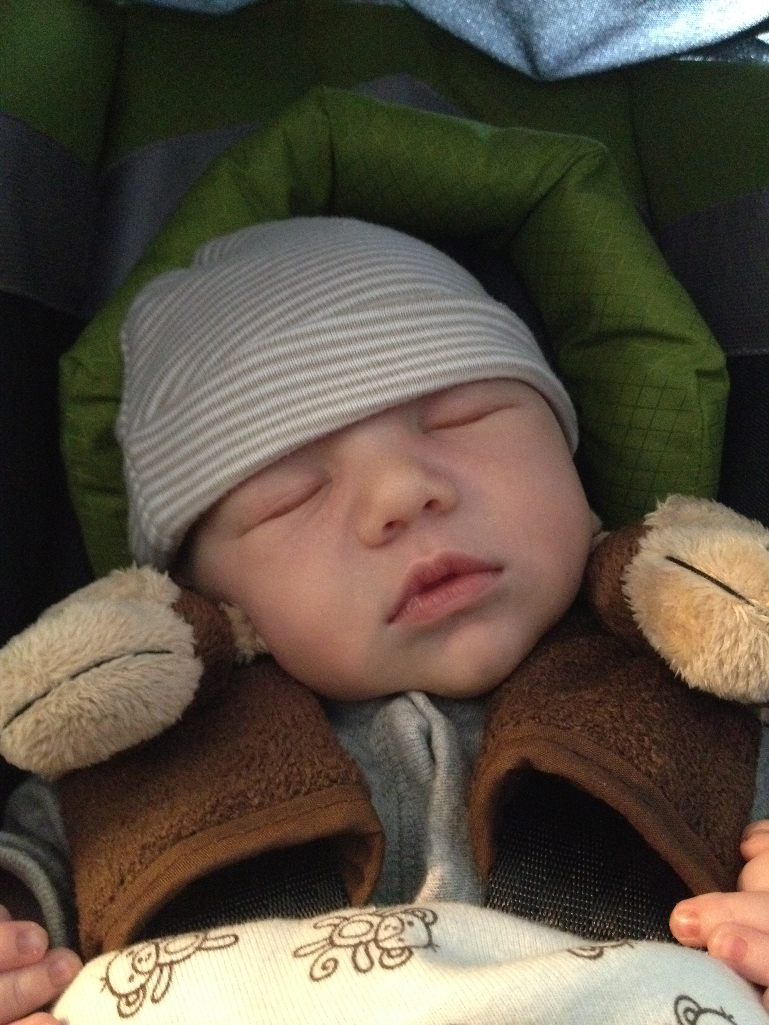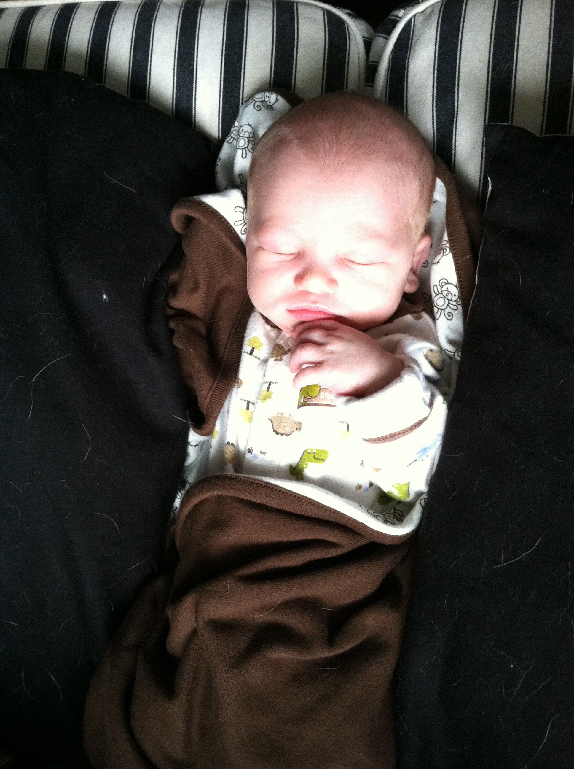 That’s pretty much how Hunter is now that he’s sleeping on my chest. Glad Jason’s such a good sleeper for you too.