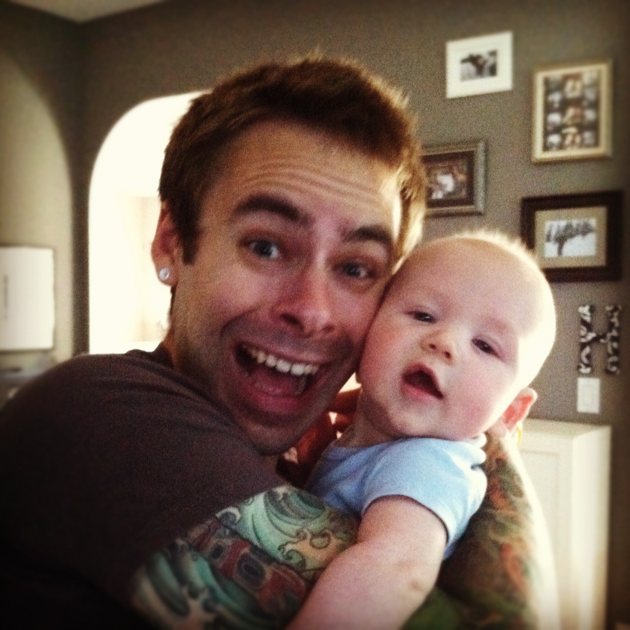 Love the drool in the hair! My husband got puke right in his face and mouth once… he learned not to play to hard after feeding after that 🙂