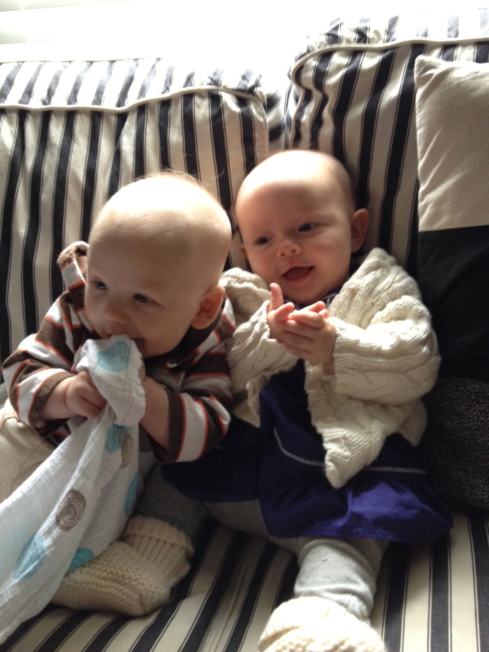 He has lots of play dates with Mabel. She enjoys tugging on his ears, and more recently, stealing his paci from his mouth and putting it in hers. Aren’t they just so cute together??