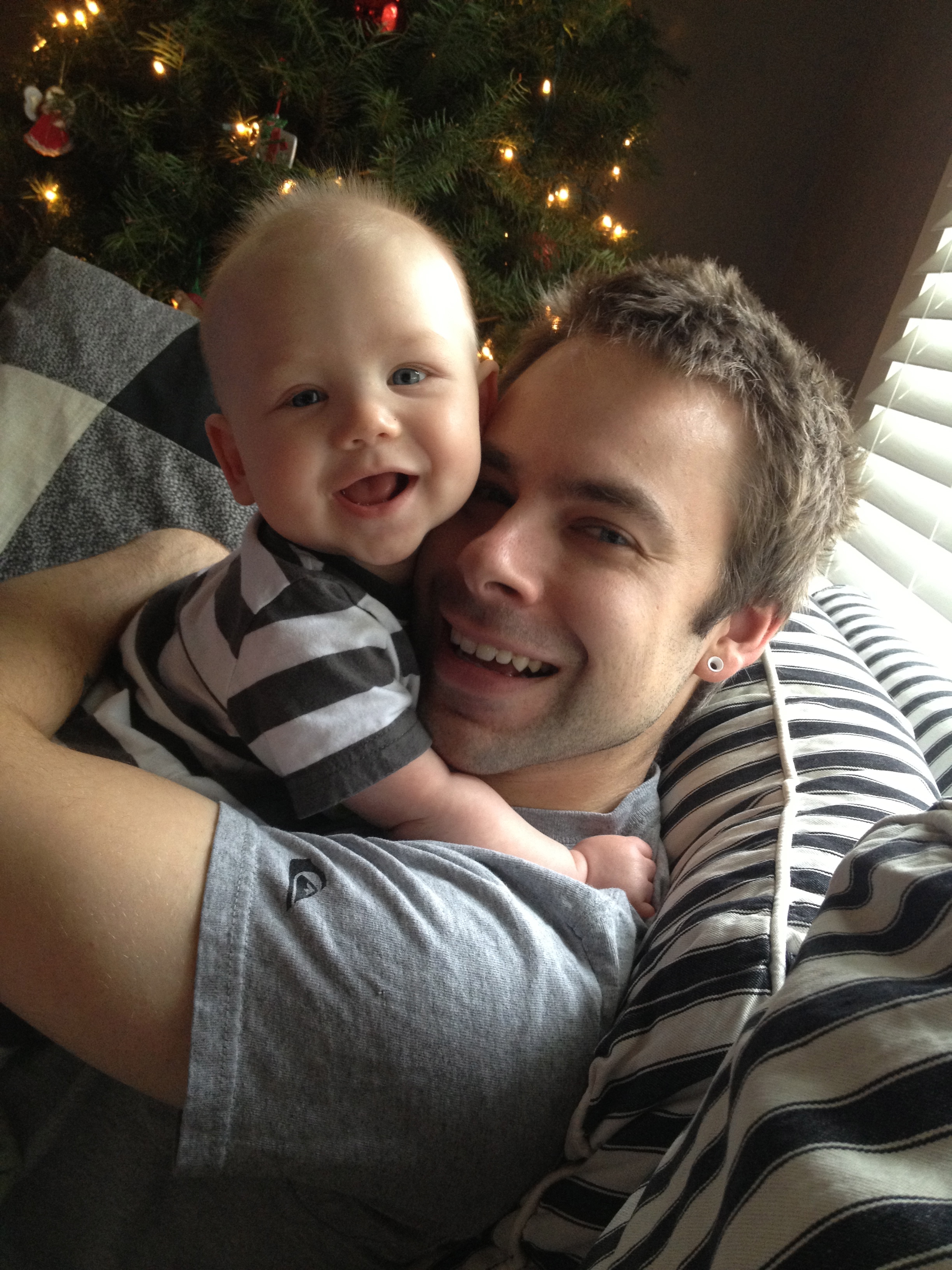 What a doll! He is getting so big. Looks like such a happy baby! Merry Christmas!