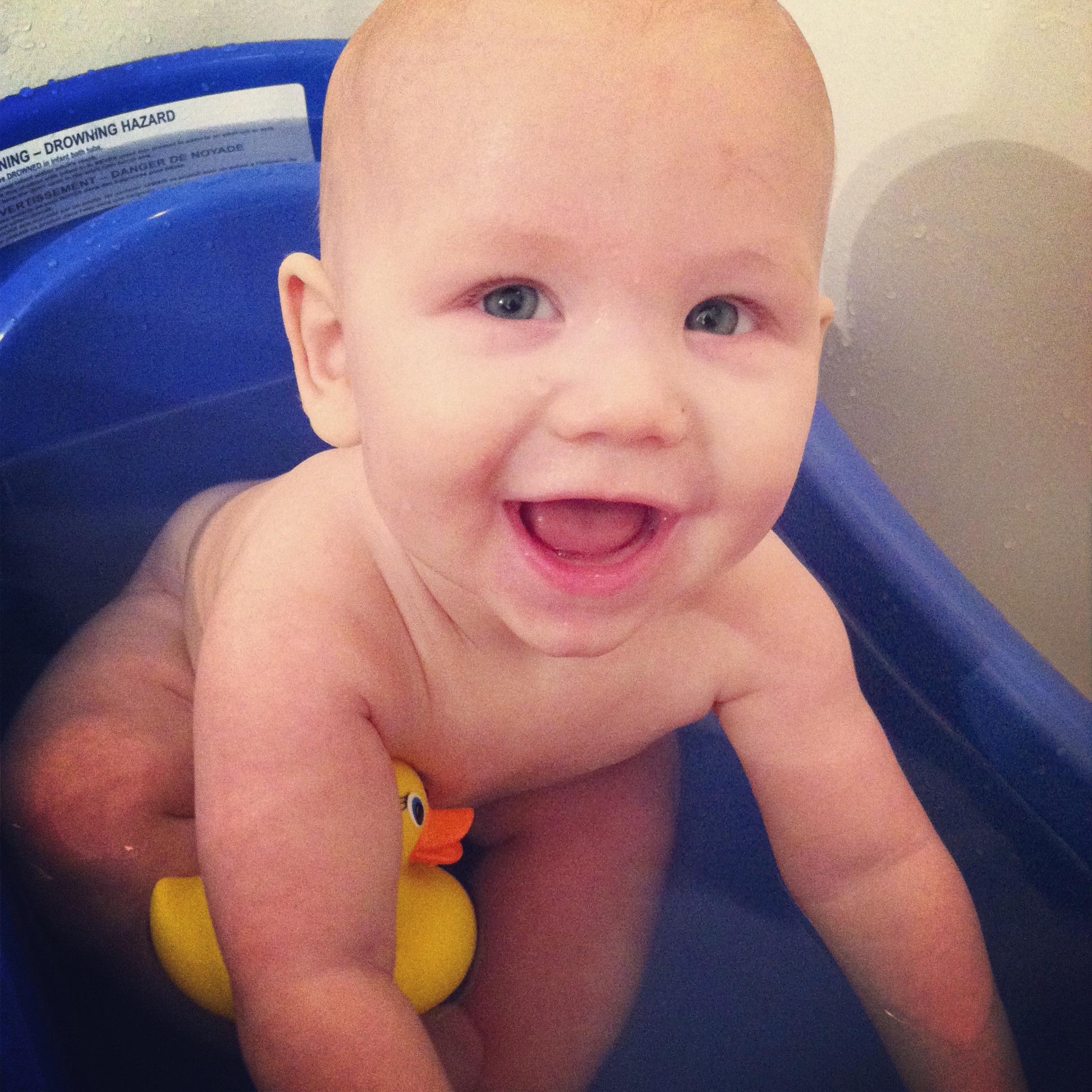 No more infant sling in his bath tub. We’ve gone to sitting! He can play a lot more easily now. Bath time is still his favorite. He can be grouchy before a bath, but once he’s in there it’s all smiles.