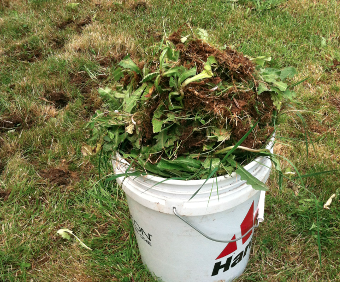 We’re going to be ripping out half of the lawn and putting garden boxes in, so I only had to work on getting weeds out of the left half. Still, I filled up more than 3 of these 5 gallon buckets!