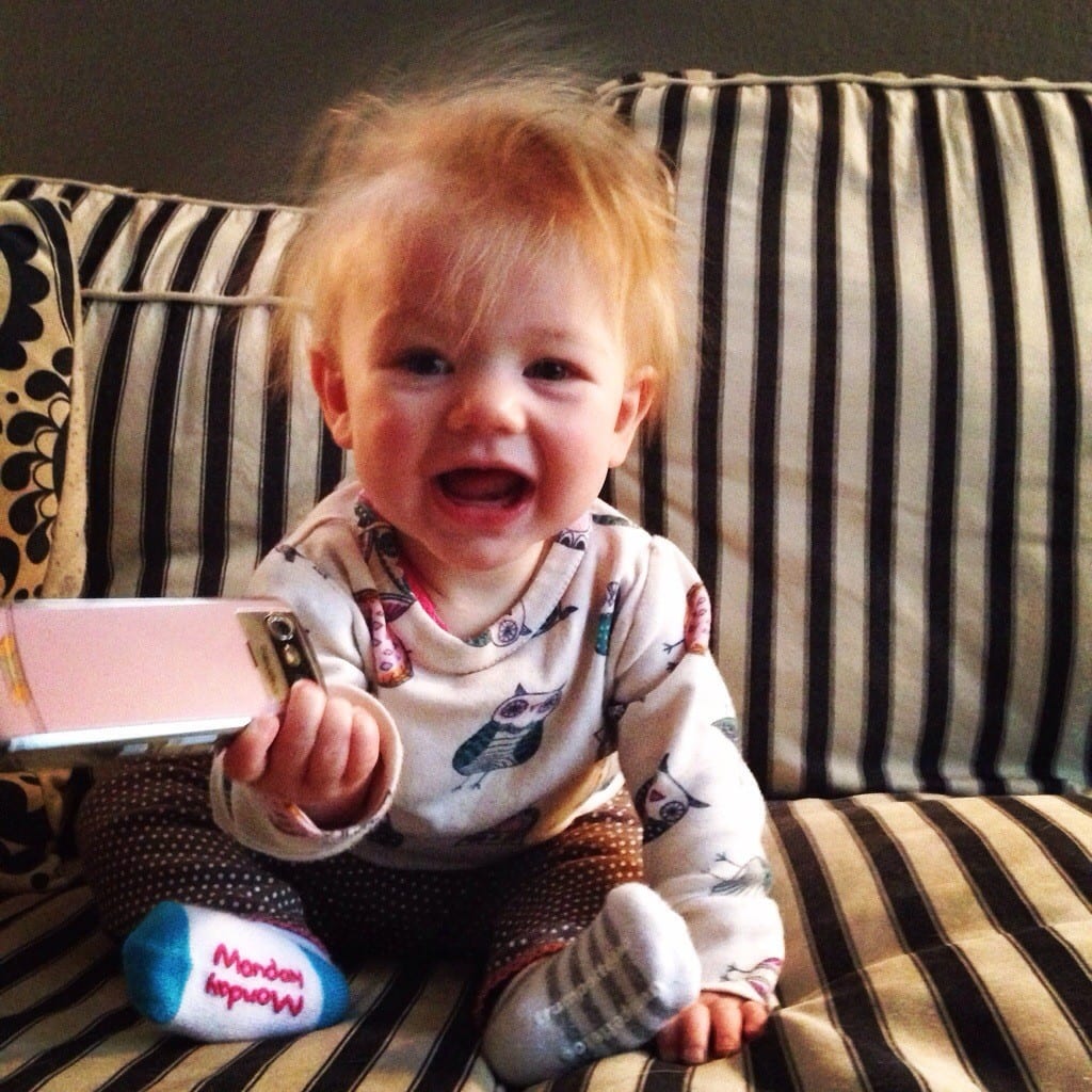 I love this little girl’s smile and itty bitty top knot. The filter in this picture makes her eyes look black, but really they’re hazel-like. Sometimes they look brown, sometimes green and every once in a while blue. They always go with her outfit. 🙂